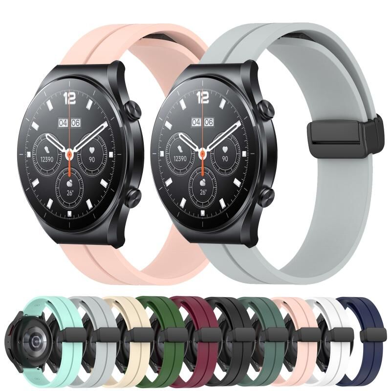 Για Xiaomi MI Watch S1 22mm στερεό χρώμα μαγνητικό κούμπωμα σιλικόνης ρολόι μπάντα ρολογιού (κόκκινο κρασί)