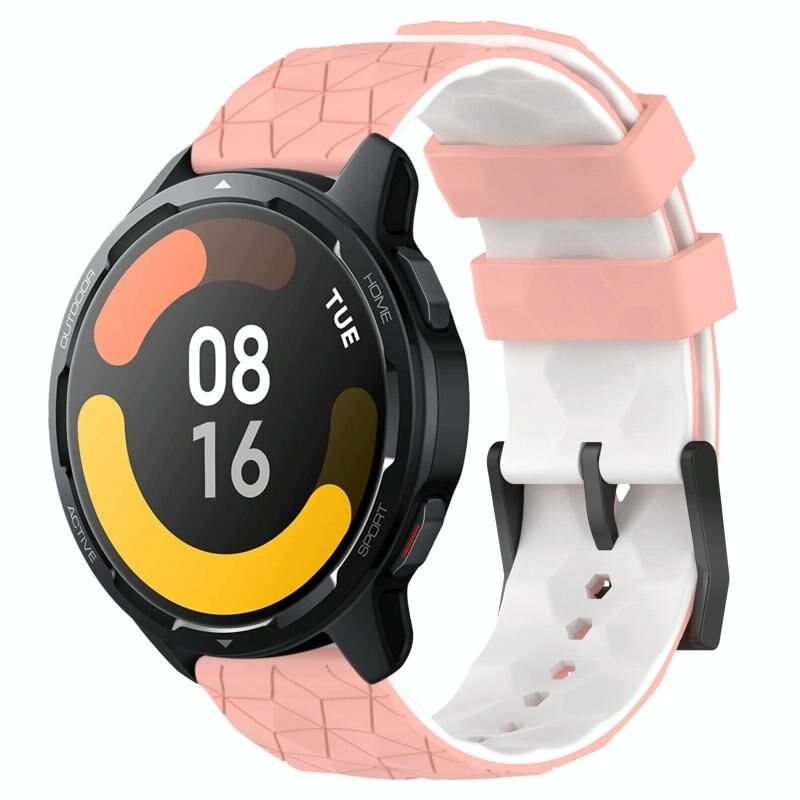 Για Xiaomi MI Watch S1 Active 22mm ποδοσφαίρου μοτίβο δύο χρωμάτων σιλικόνης ρολόι μπάντα (ροζ + λευκό)