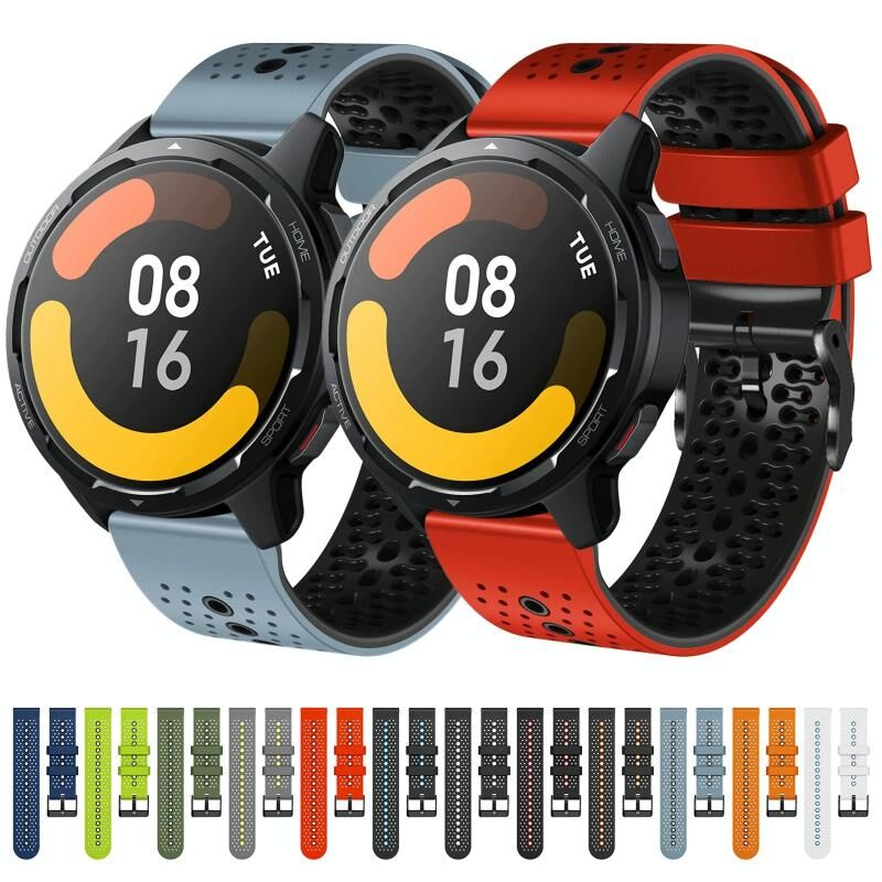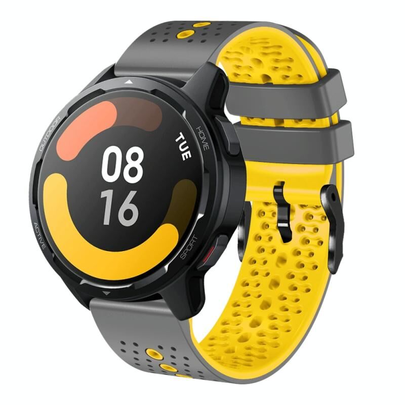 Για Xiaomi MI Watch S1 Active 22mm διάτρητο συγκρότημα ρολογιού σιλικόνης δύο χρωμάτων (γκρι+κίτρινο)