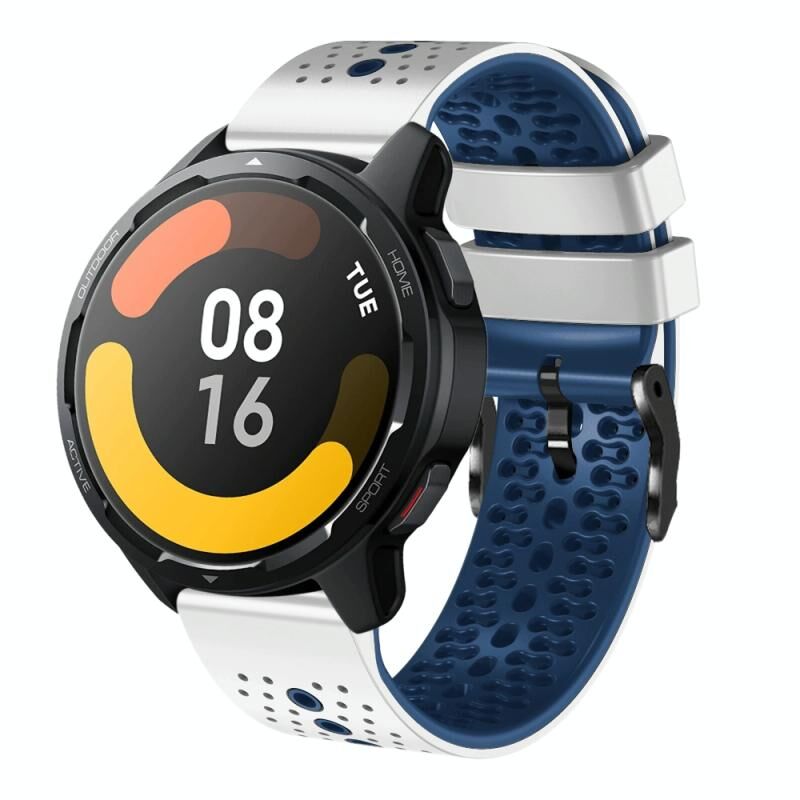 Για το Xiaomi MI Watch S1 Active 22mm διάτρητη ζώνη ρολογιού σιλικόνης δύο χρωμάτων (λευκό + μπλε)