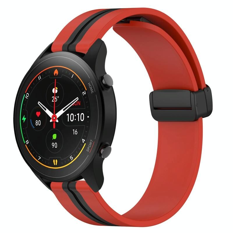 Για Xiaomi MI Watch S1 Pro 22mm Πτυσσόμενο μαγνητικό κούμπωμα ζώνη ρολογιού σιλικόνης (κόκκινο+μαύρο)