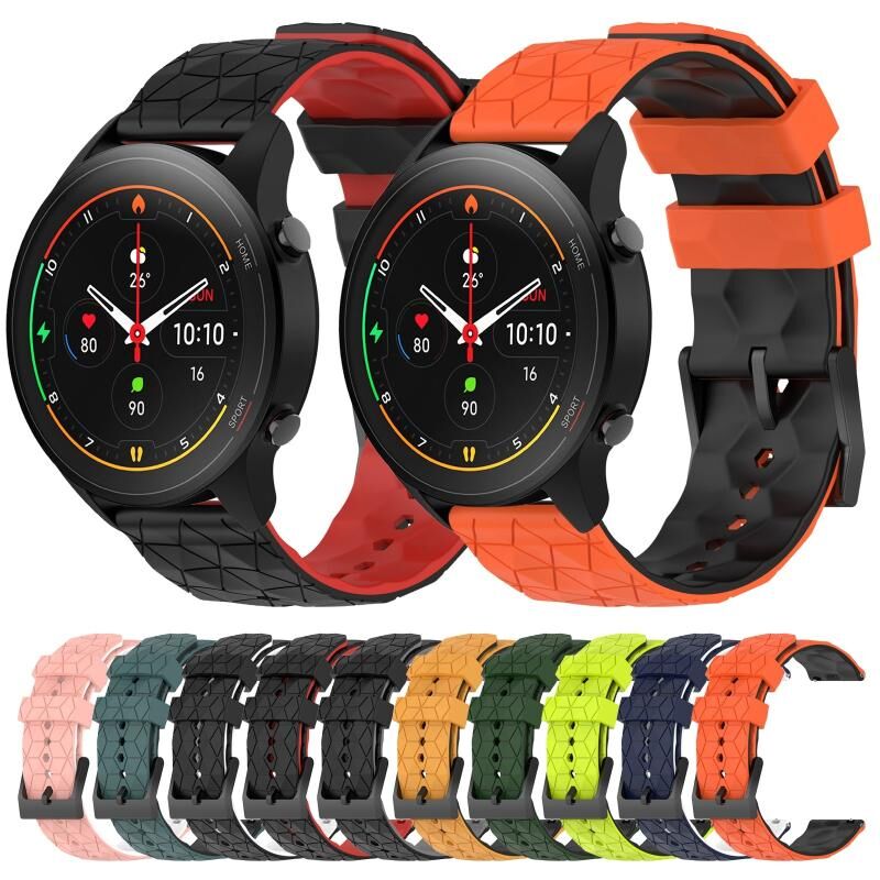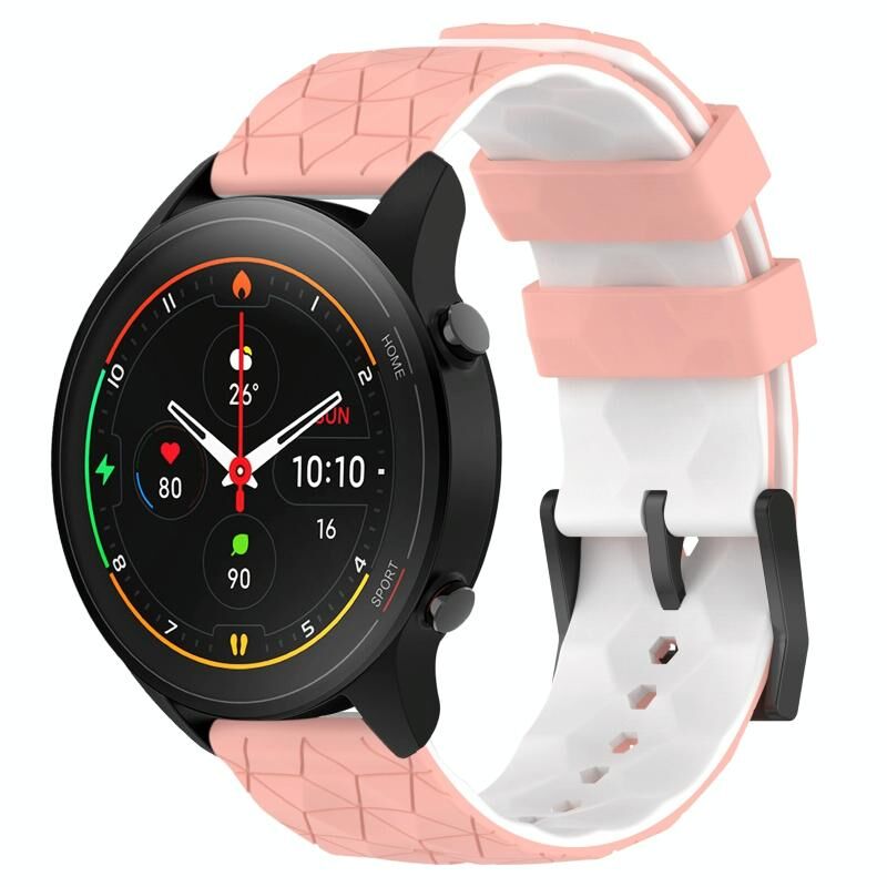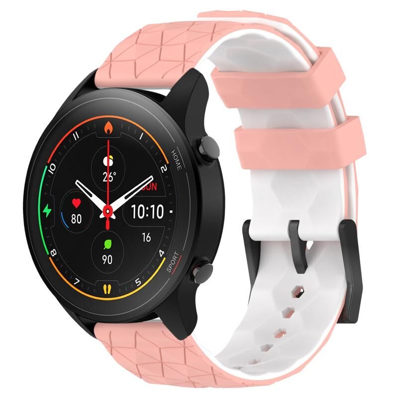Για το Xiaomi MI Watch S1 Pro 22mm Football Pattern Two-Color Silicone Watch Band (ροζ+λευκό)