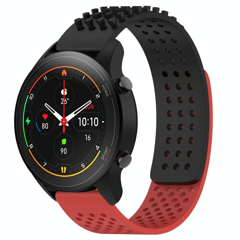 For Xiaomi MI Watch S1 Pro 22mm Holes Breathable 3D Dots Silicone Watch Band(Black+Red)