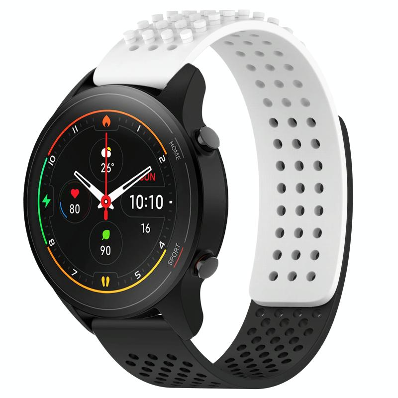 For Xiaomi MI Watch S1 Pro 22mm Holes Breathable 3D Dots Silicone Watch Band(White+Black)