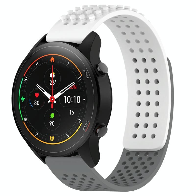 For Xiaomi MI Watch S1 Pro 22mm Holes Breathable 3D Dots Silicone Watch Band(White+Grey)
