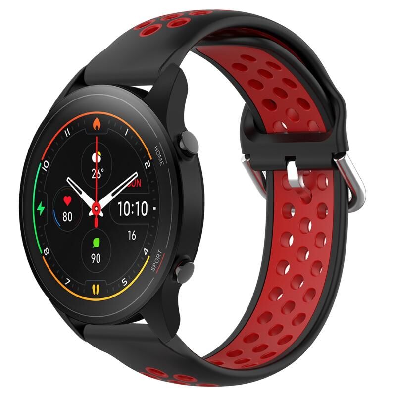 Για το Xiaomi MI Watch S1 Pro 22mm διάτρητη αναπνεύσιμη αθλητική ζώνη ρολογιού σιλικόνης (μαύρο + κόκκινο)