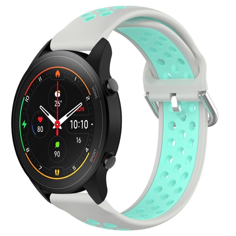 Για το Xiaomi MI Watch S1 Pro 22mm διάτρητη αναπνεύσιμη αθλητική ζώνη ρολογιού σιλικόνης (γκρι+νερό πάπια)