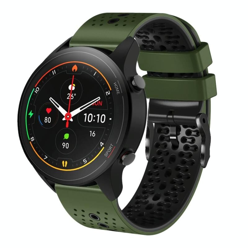 Για το Xiaomi MI Watch S1 Pro 22mm διάτρητη ζώνη ρολογιού σιλικόνης δύο χρωμάτων (πράσινο στρατού+μαύρο)