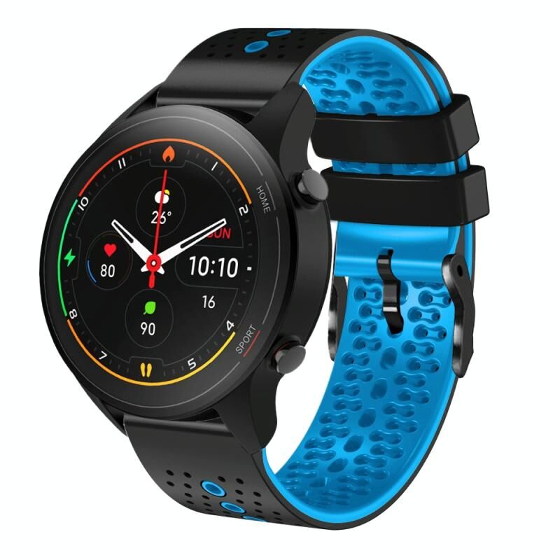 Για το Xiaomi MI Watch S1 Pro 22mm διάτρητη ζώνη ρολογιού σιλικόνης δύο χρωμάτων (μαύρο + μπλε)
