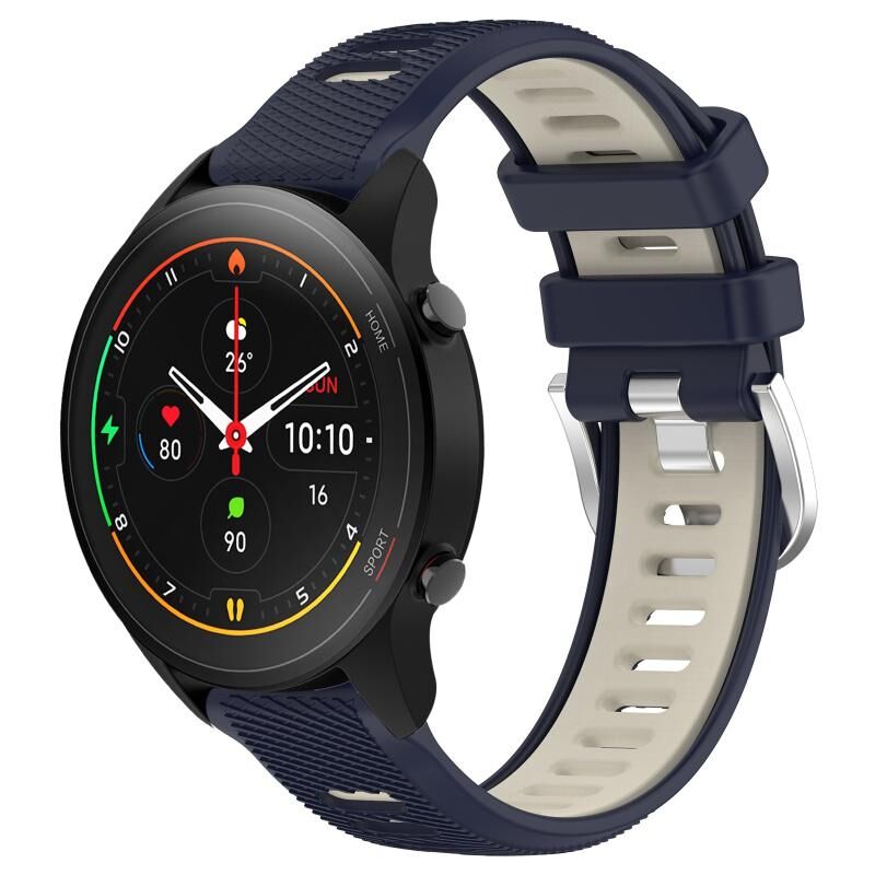 Για Xiaomi MI Watch S1 Pro 22mm Αθλητισμός Δύο χρώματα χάλυβα πόρπη σιλικόνης ρολόι μπάντα (Midnight Blue + Starlight)