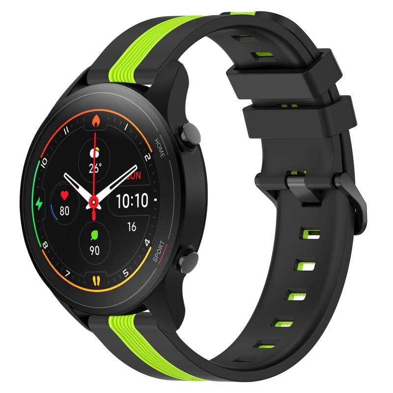 Για Xiaomi MI Watch S1 Pro 22mm Κάθετη ζώνη ρολογιού σιλικόνης δύο χρωμάτων (μαύρο + πράσινο χρώμα)