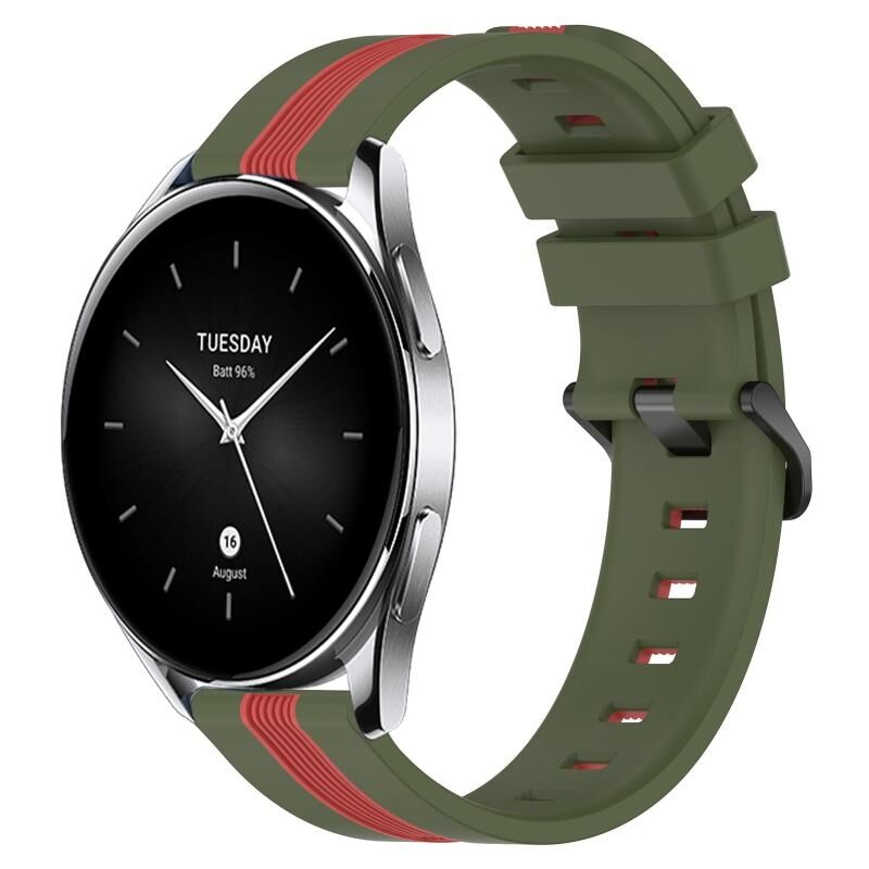 Για Xiaomi MI Watch S2 42mm 22mm Κάθετη ζώνη ρολογιού σιλικόνης δύο χρωμάτων (πράσινο στρατού + κόκκινο)