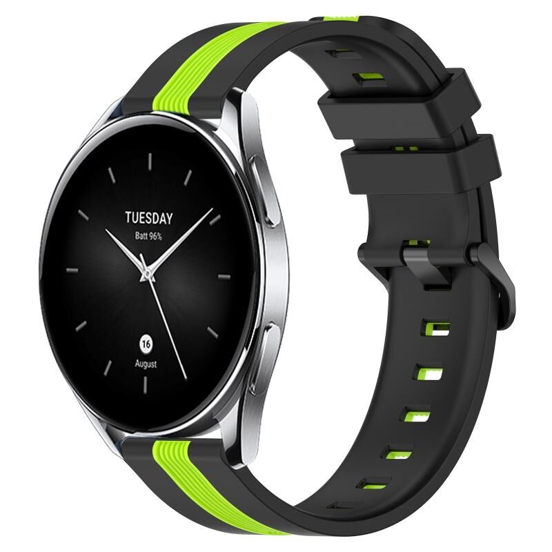 Για Xiaomi MI Watch S2 42mm 22mm Κάθετη ζώνη ρολογιού σιλικόνης δύο χρωμάτων (μαύρο + πράσινο χρώμα)