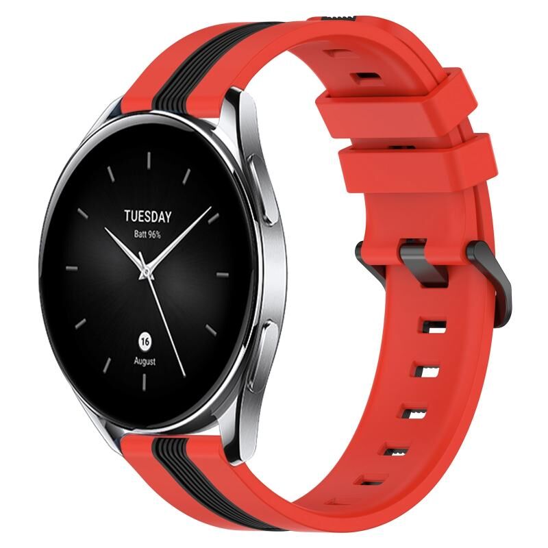Για Xiaomi MI Watch S2 42mm 22mm Κάθετη ζώνη ρολογιού σιλικόνης δύο χρωμάτων (κόκκινο+μαύρο)