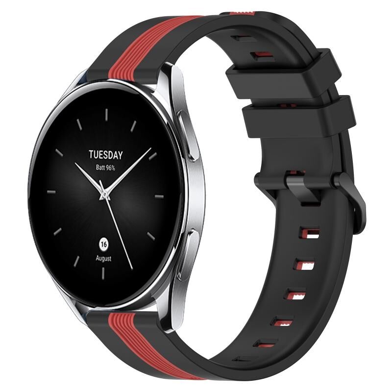 Για Xiaomi MI Watch S2 46mm 22mm Κάθετη ζώνη ρολογιού σιλικόνης δύο χρωμάτων (μαύρο + κόκκινο)