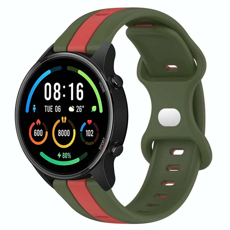 For Xiaomi MI Watch Sport 22mm Butterfly Buckle Two-Color Silicone Watch Band(Red+Army Green)