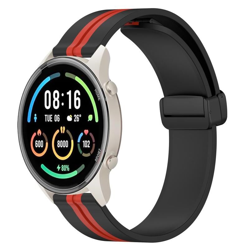 Για Xiaomi MI Watch Sport 22mm Πτυσσόμενο μαγνητικό κούμπωμα ζώνη ρολογιού σιλικόνης (μαύρο + κόκκινο)