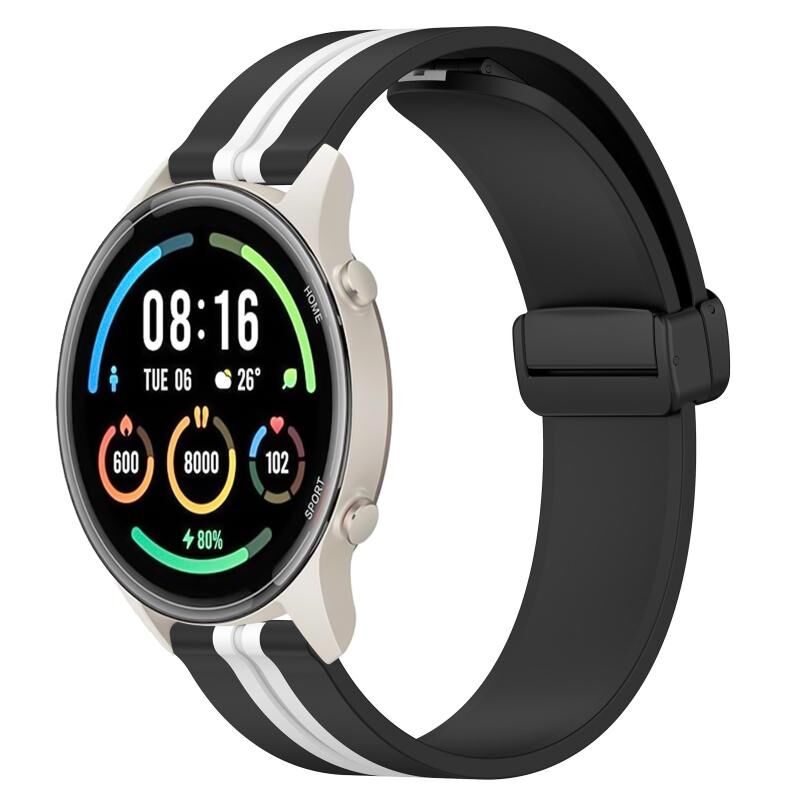 Για Xiaomi MI Watch Sport 22mm Πτυσσόμενο μαγνητικό κούμπωμα ζώνη ρολογιού σιλικόνης (Μαύρο + Λευκό)