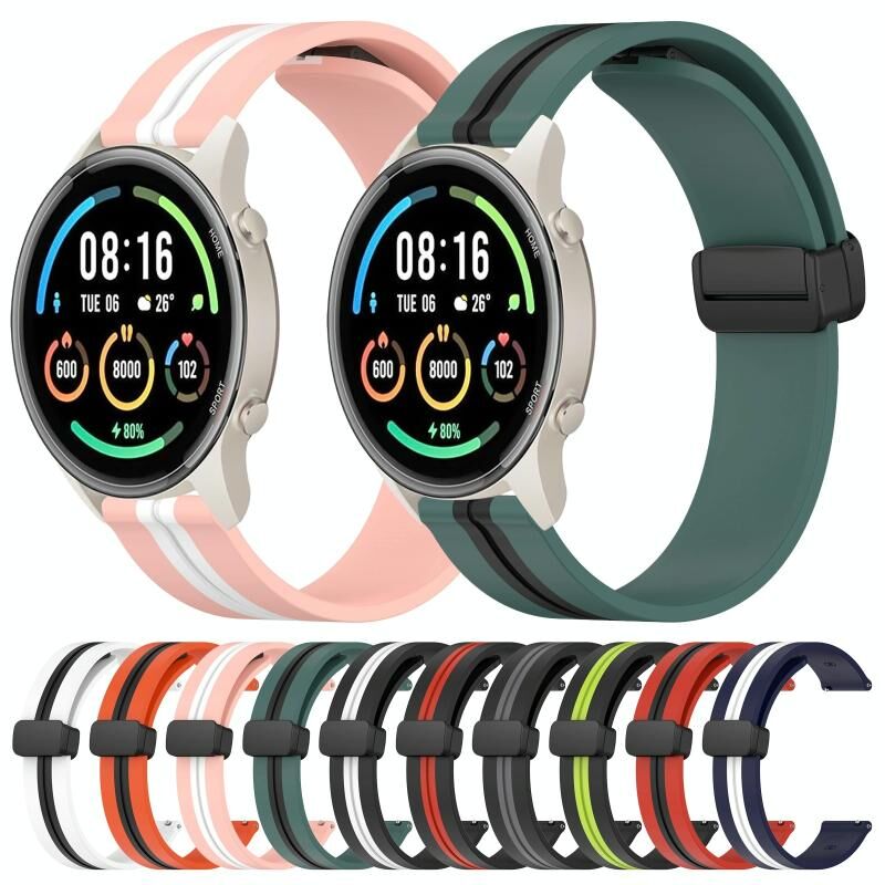 Για Xiaomi MI Watch Sport 22mm Πτυσσόμενο μαγνητικό κούμπωμα ζώνη ρολογιού σιλικόνης (ροζ+λευκό)