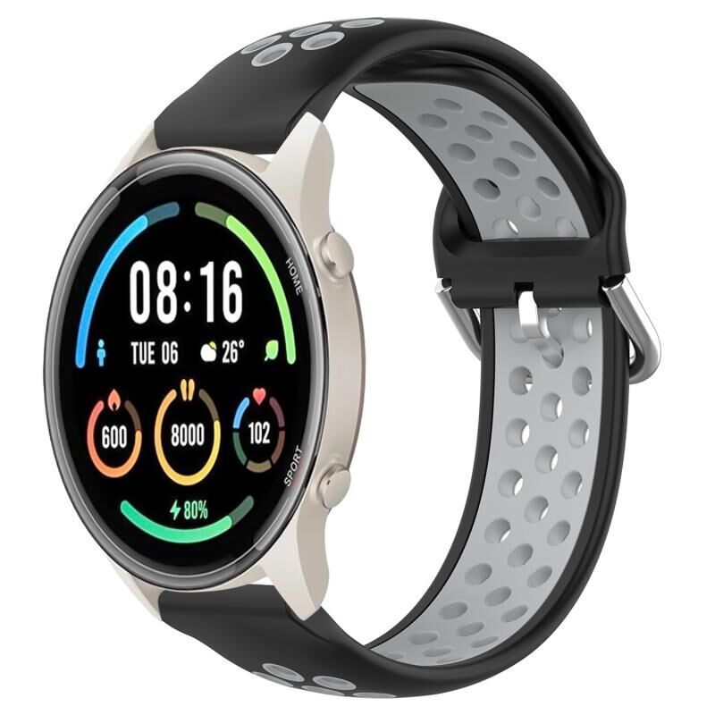 Για το Xiaomi MI Watch Sport 22mm διάτρητη αναπνεύσιμη αθλητική ζώνη ρολογιού σιλικόνης (μαύρο + γκρι)