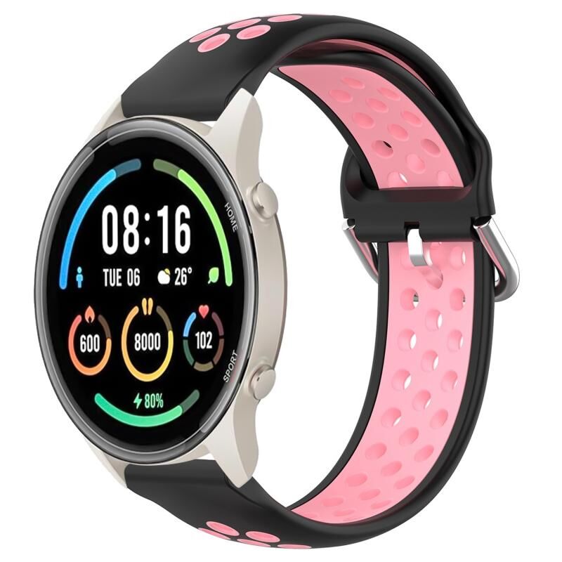 Για το Xiaomi MI Watch Sport 22mm διάτρητη αναπνεύσιμη αθλητική ζώνη ρολογιού σιλικόνης (μαύρο + ροζ)