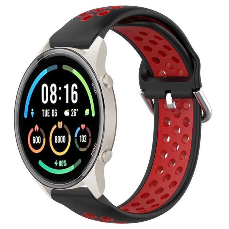 Για το Xiaomi MI Watch Sport 22mm διάτρητη αναπνεύσιμη αθλητική ζώνη ρολογιού σιλικόνης (μαύρο + κόκκινο)