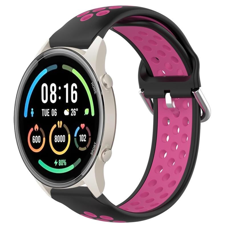 Για το Xiaomi MI Watch Sport 22mm διάτρητη αναπνεύσιμη αθλητική ζώνη ρολογιού σιλικόνης (Μαύρο + Ροζ Κόκκινο)