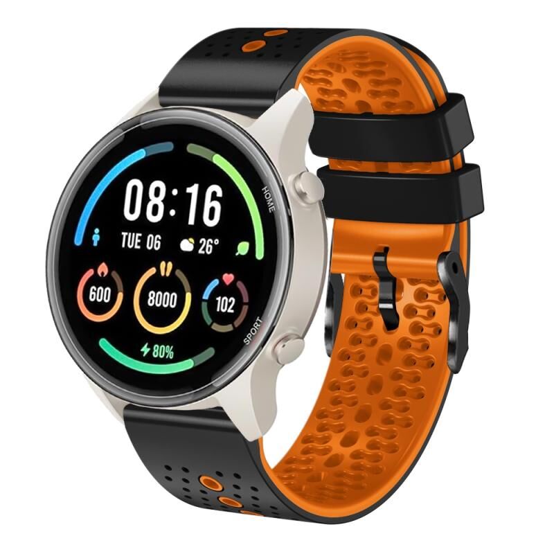Για το Xiaomi MI Watch Sport 22mm διάτρητη ζώνη ρολογιού σιλικόνης δύο χρωμάτων (μαύρο + πορτοκαλί)