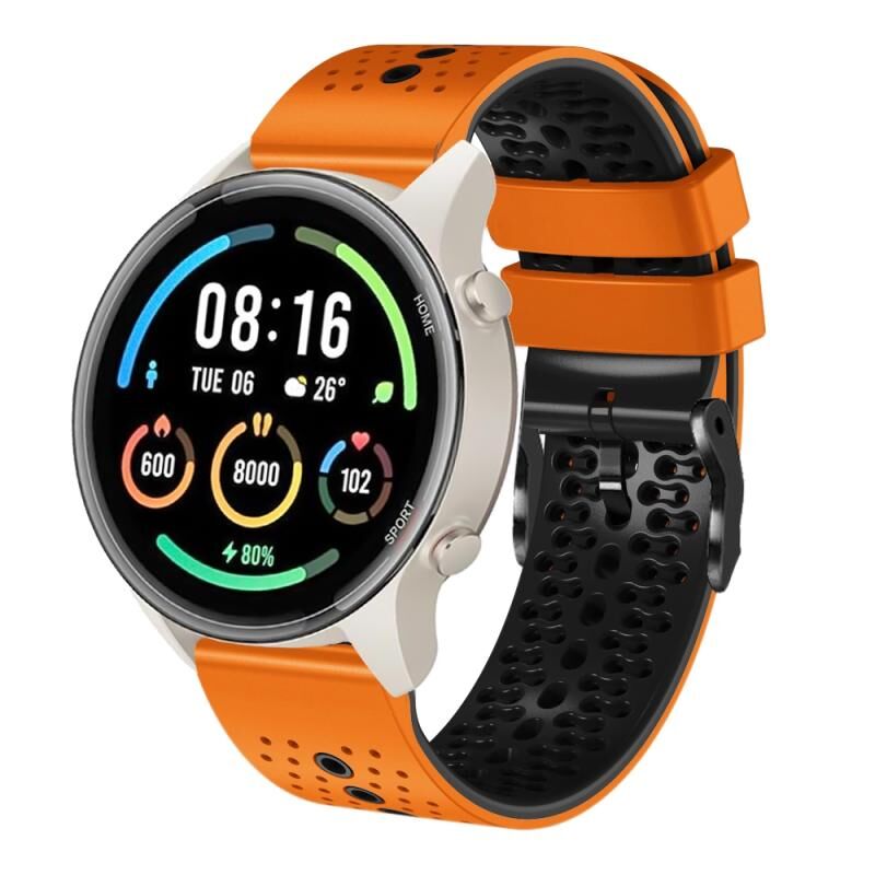 Για το Xiaomi MI Watch Sport 22mm διάτρητη ζώνη ρολογιού σιλικόνης δύο χρωμάτων (πορτοκαλί+μαύρο)