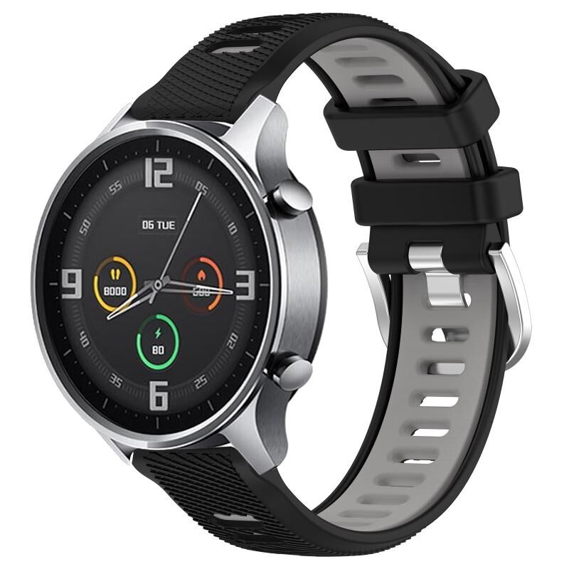 Για Xiaomi MI Watch Sport 22mm Αθλητισμός δύο χρωμάτων χάλυβα πόρπη σιλικόνης ρολόι μπάντα (μαύρο + γκρι)