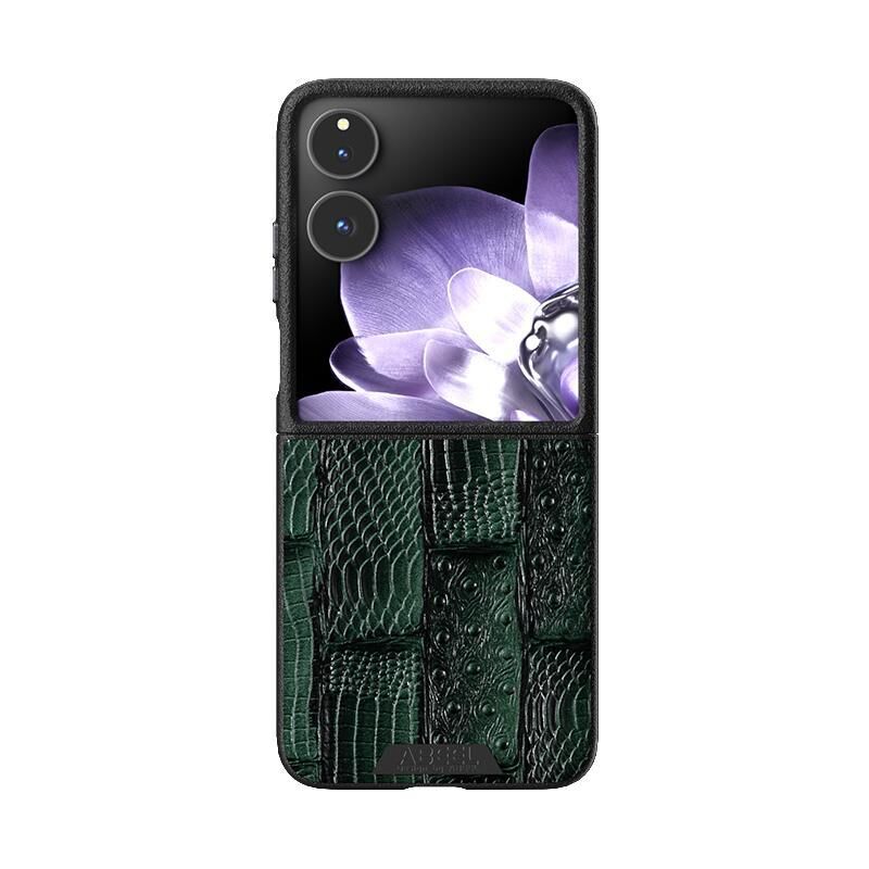 For Xiaomi Mix Flip ABEEL Beast Pattern 6D Micro-Embossed MagSafe Genuine Leather Phone Case(Green)