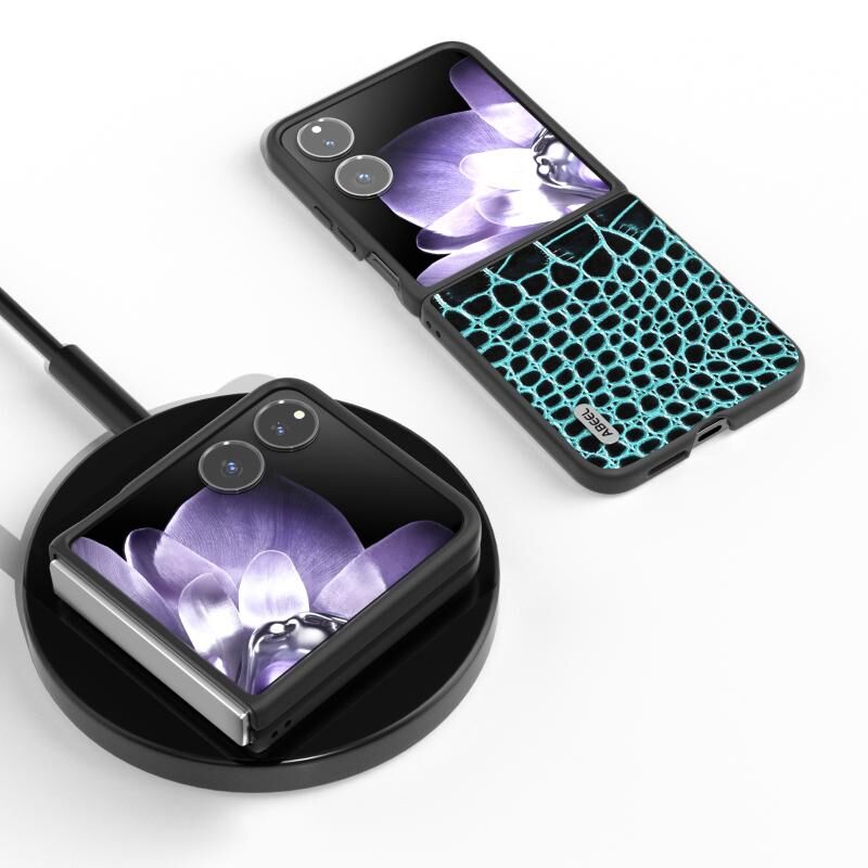 Θήκη τηλεφώνου από γνήσιο δέρμα κροκόδειλου με μαύρο περίγραμμα για Xiaomi Mix Flip ABEEL (Μπλε)
