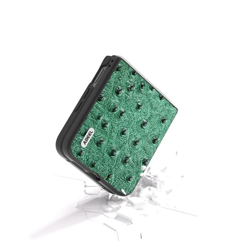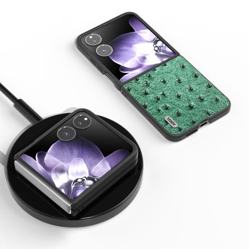 Θήκη τηλεφώνου από γνήσιο δέρμα με υφή στρουθοκάμπου για Xiaomi Mix Flip ABEEL (Πράσινο)