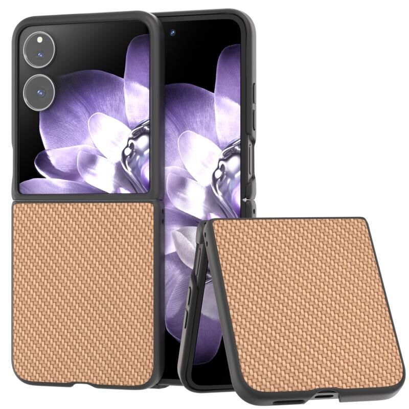 Για Xiaomi Mix Flip Μαύρο πλαίσιο ανθρακονήματα υφή PU τηλέφωνο υπόθεση (χρυσό)