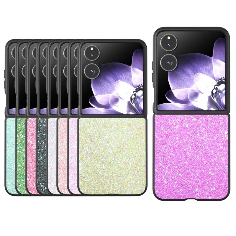 Για Xiaomi Mix Flip μαύρο πλαίσιο πολύχρωμο Glitter τηλέφωνο υπόθεση (σκούρο ροζ)