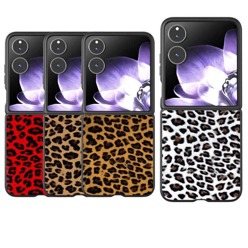 For Xiaomi Mix Flip Black Frame Leopard Full Coverage Phone Case(Silver Leopard)