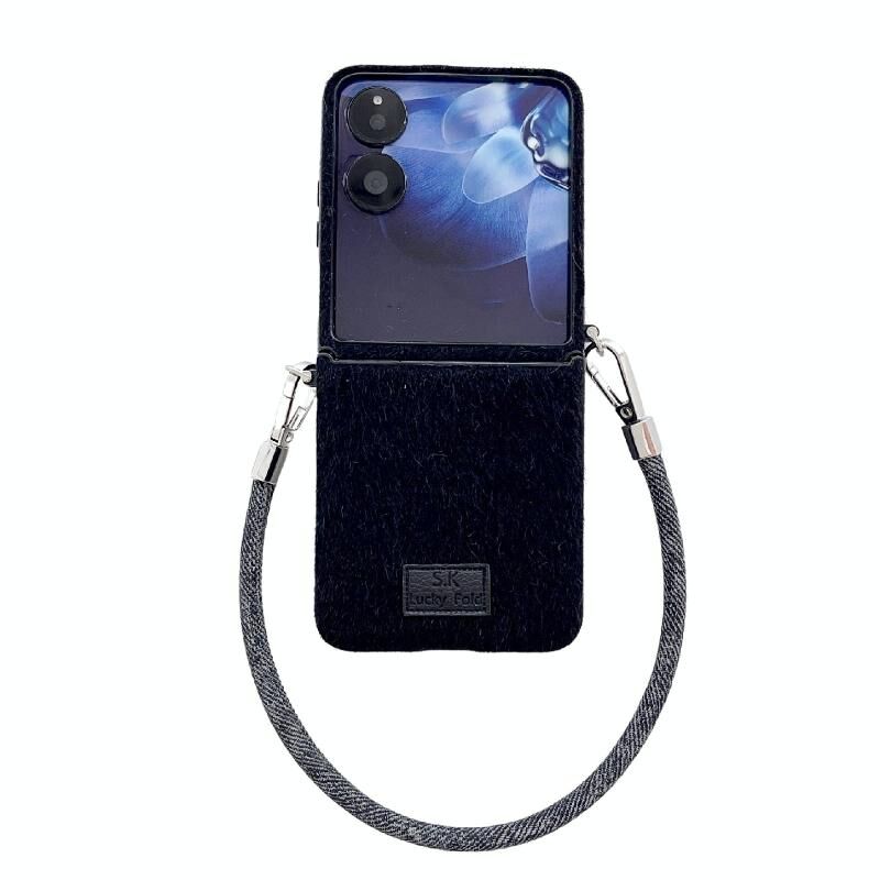 Για Xiaomi Mix Flip Άνετη σύντομη βελούδινη θήκη τηλεφώνου πλήρους κάλυψης με λουράκι καρπού (μαύρο)