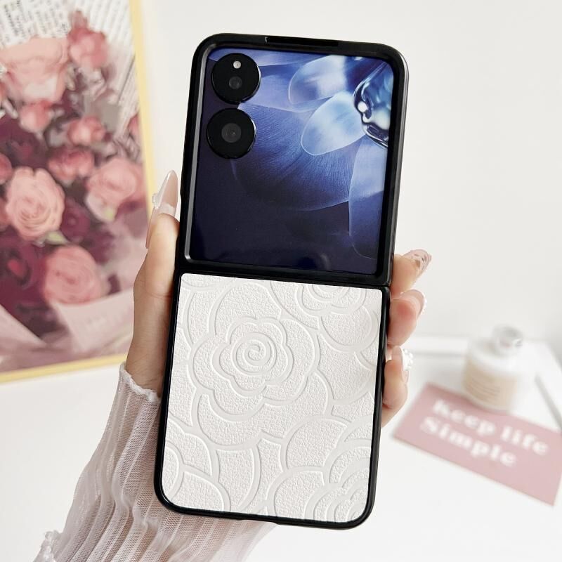 Για Xiaomi Mix Flip Εντύπωση Camellia μοτίβο Προστατευτική θήκη τηλεφώνου (λευκό)