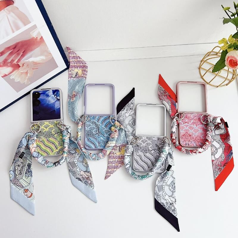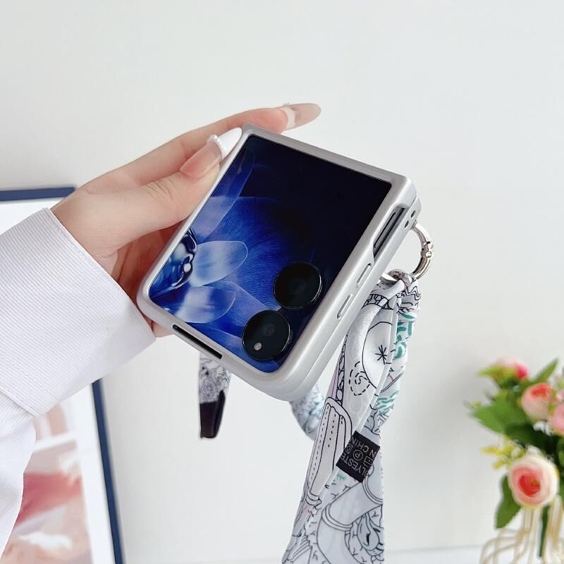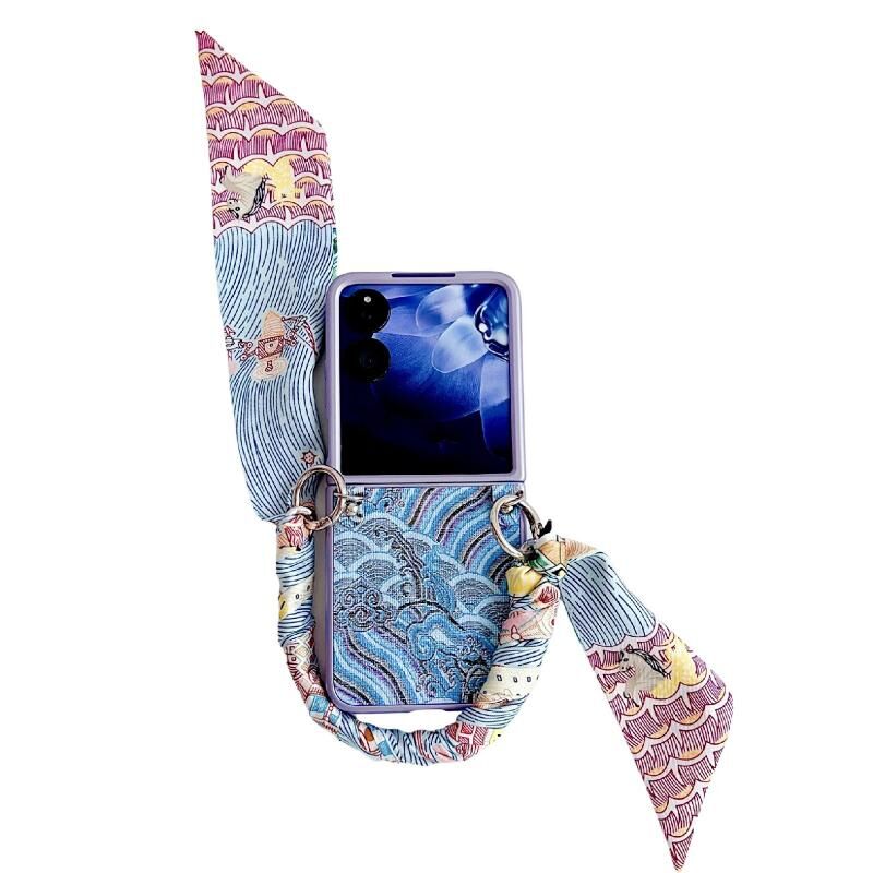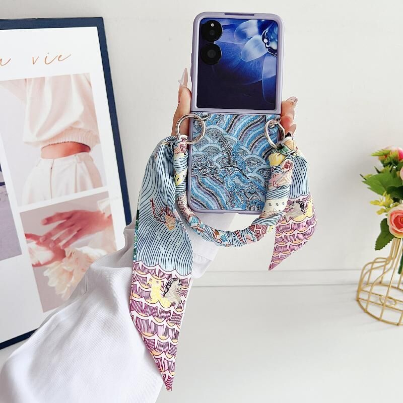 Θήκη κινητού τηλεφώνου Xiaomi Mix Flip με ευοίωνες κεντημένες νεφελές και πλήρη κάλυψη, με κασκόλ / βραχιόλι (Πράσινο)