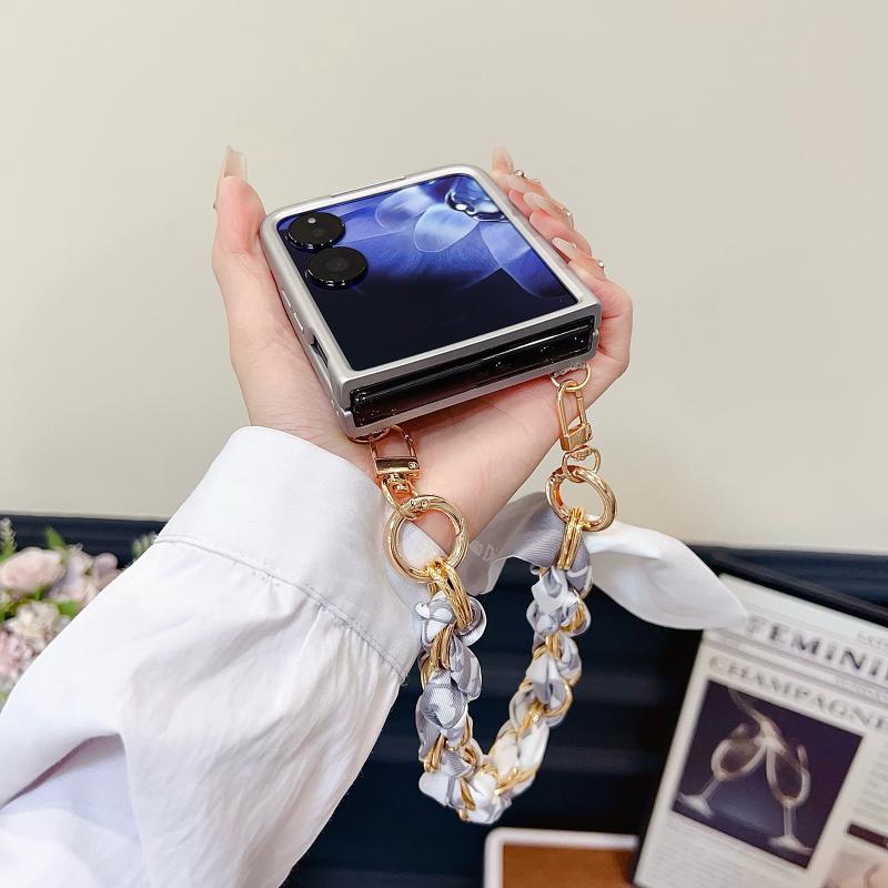 Θήκη κινητού Xiaomi Mix Flip με Λαμπερό Διαμαντένιο Ρομβικό Σχέδιο από PC με Βραχιόλι Μεταξωτού Μαντηλιού (Μωβ)