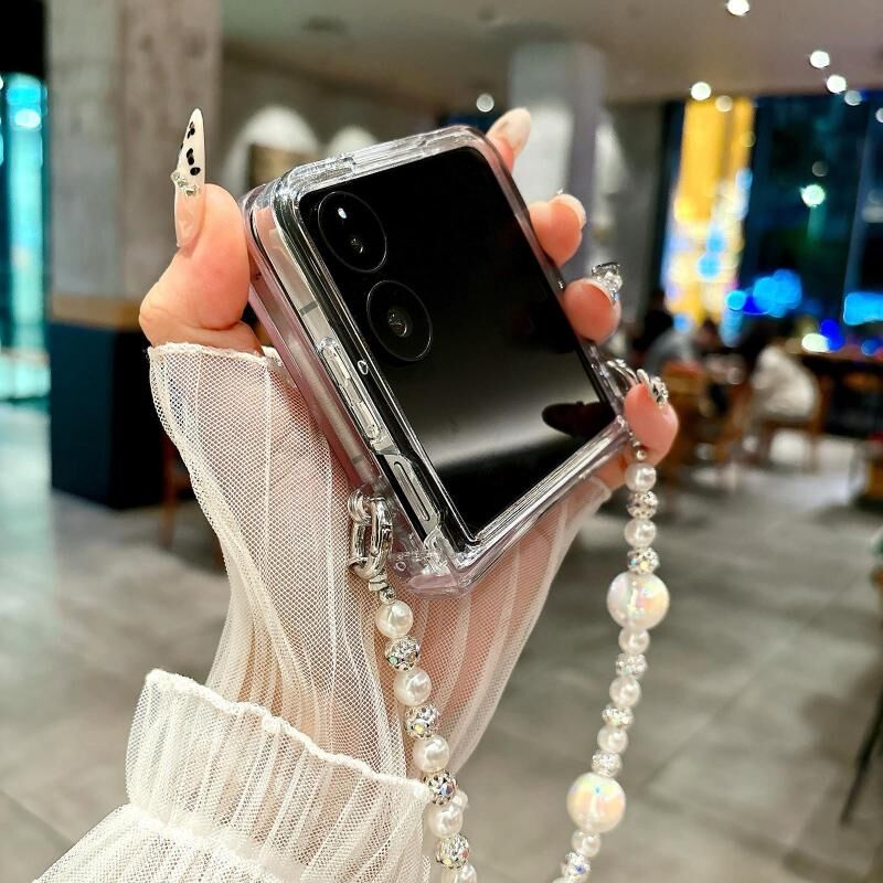 7. Έρχεται με ένα εκθαμβωτικό βραχιόλι με μαργαριτάρια που σας βοηθά να κρατάτε με ασφάλεια το τηλέφωνο, εξασφαλίζοντας ασφαλή και άνετη χρήση. Μπορείτε επίσης να το κρεμάσετε στον καρπό σας, καθιστώντας τον εύκολο χειρισμό του σε διάφορες καταστάσεις.