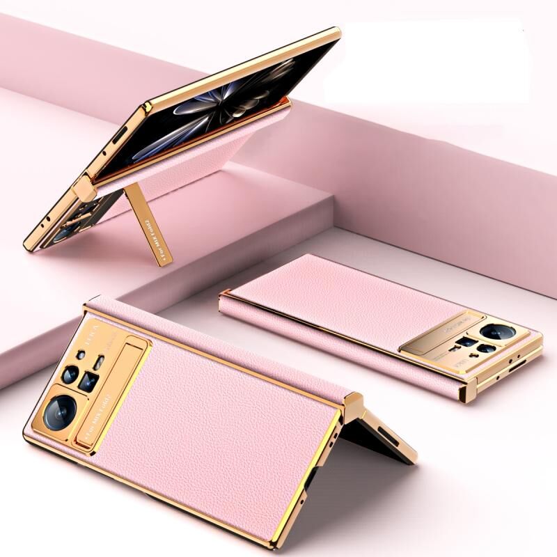 Για Xiaomi Mix Fold 2 Electroplated Frame Plain Leather Phone Case (ροζ)
