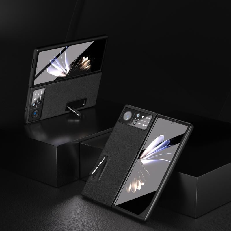 For Xiaomi Mix Fold 2 Integrated Genuine Leather Luolai Series Phone Case with Holder(Black)