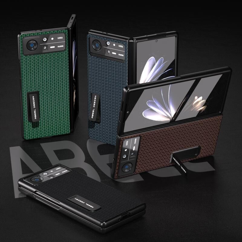 Θήκη τηλεφώνου πολυτελείας από γνήσιο δέρμα για Xiaomi Mix Fold 2 με βάση στήριξης (Καφέ)