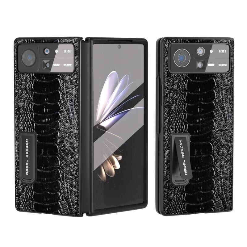 Θήκη τηλεφώνου Xiaomi Mix Fold 2 από γνήσιο δέρμα Weilai Series με βάση στήριξης (Μαύρο)