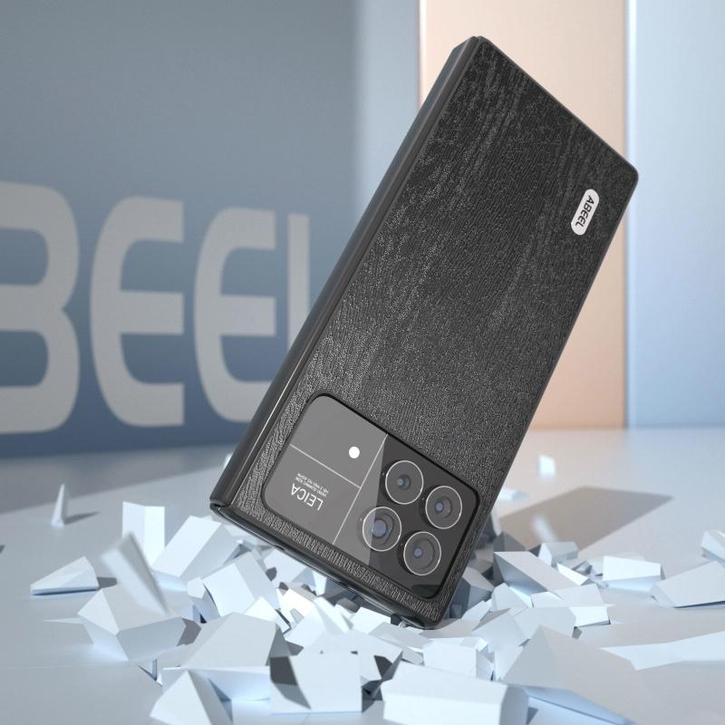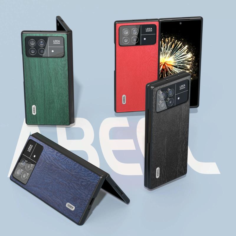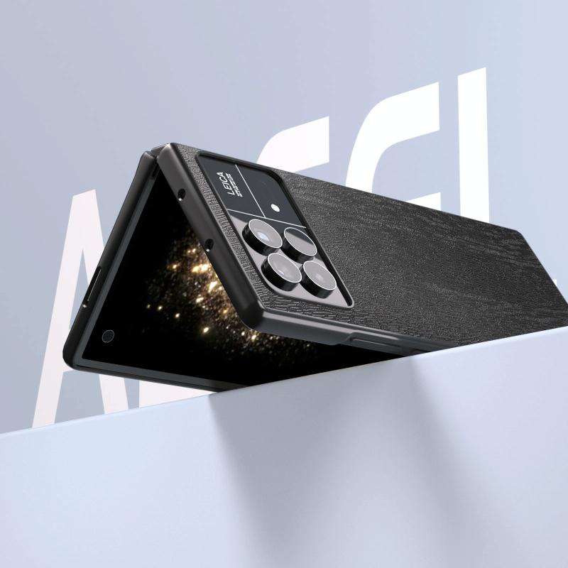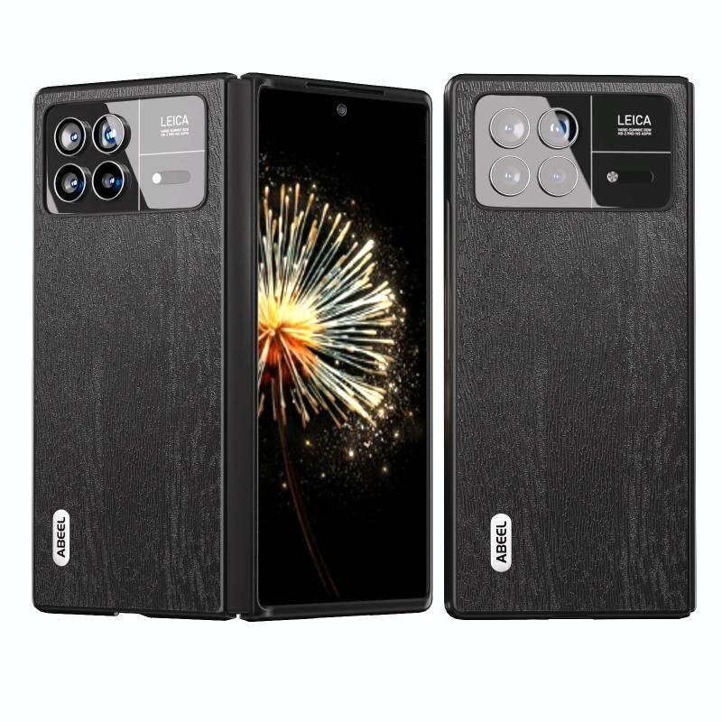 Για Xiaomi Mix Fold 3 ABEEL Θήκη Τηλεφώνου με Υφή Ξύλου PU (Μαύρο)