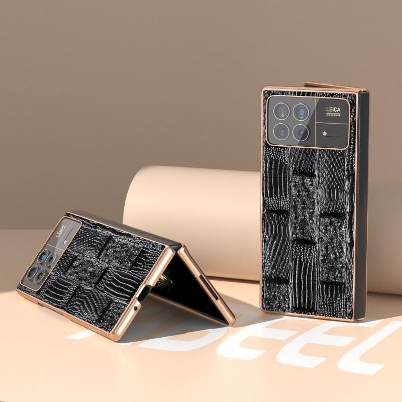 Θήκη τηλεφώνου Xiaomi Mix Fold 3 Nano Επικάλυψη Γνήσιο Δέρμα Υφή Mahjong (Μαύρο)