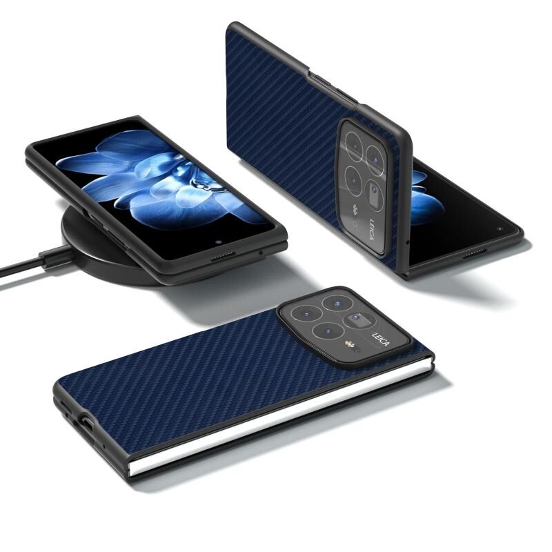 Για Xiaomi Mix Fold 4 Μαύρο πλαίσιο ανθρακονήματα υφή PU υπόθεση τηλεφώνου (μπλε)