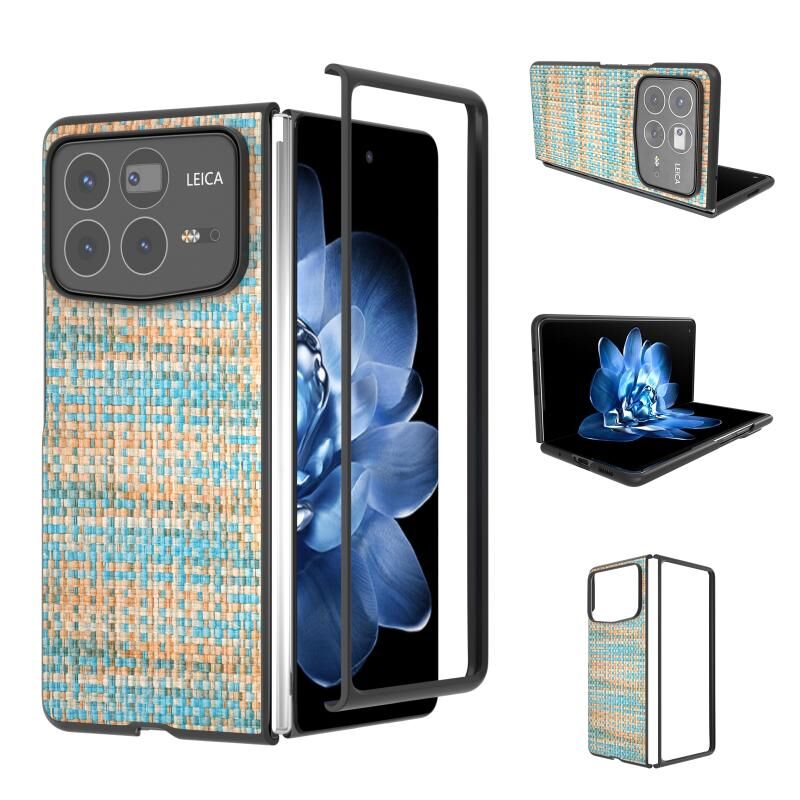 Για Xiaomi Mix Fold 4 μαύρο πλαίσιο χρώμα πλέγμα υφή PU τηλέφωνο υπόθεση (μπλε)