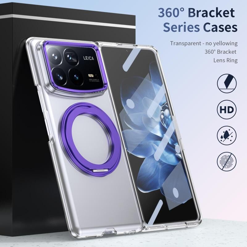 Θήκη τηλεφώνου Xiaomi Mix Fold 4, ενσωματωμένη με αίσθηση πάγου, υψηλής διαφάνειας, περιστρεφόμενη κατά 360 μοίρες, με βάση MagSafe (Βιολετί)